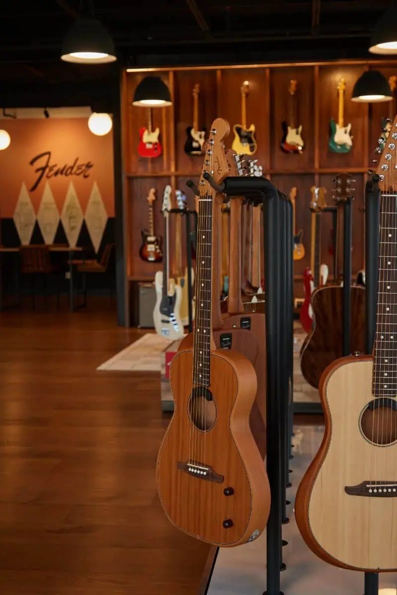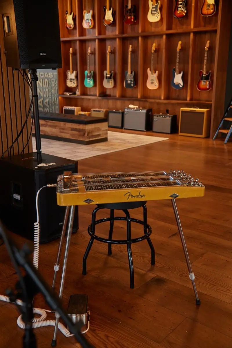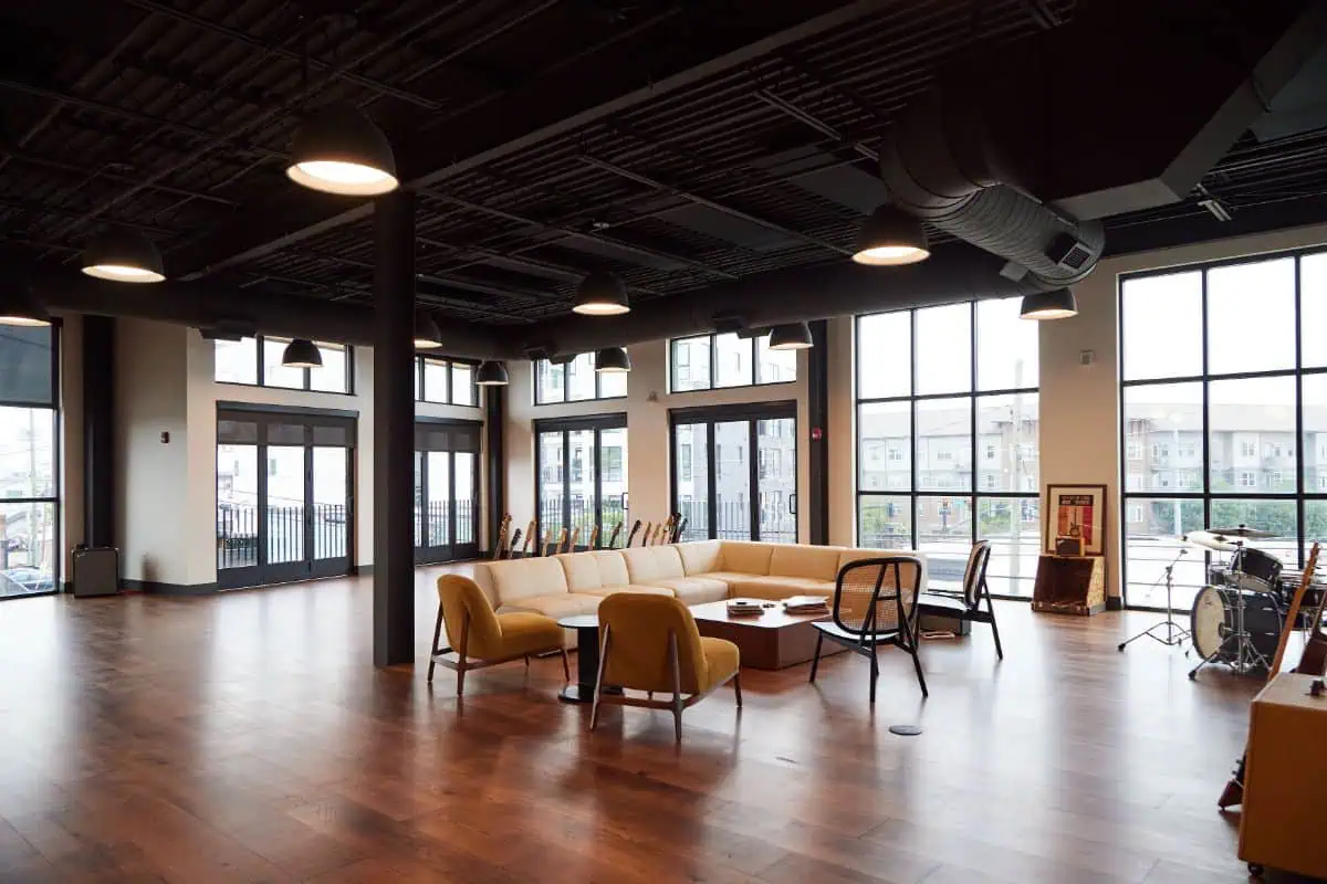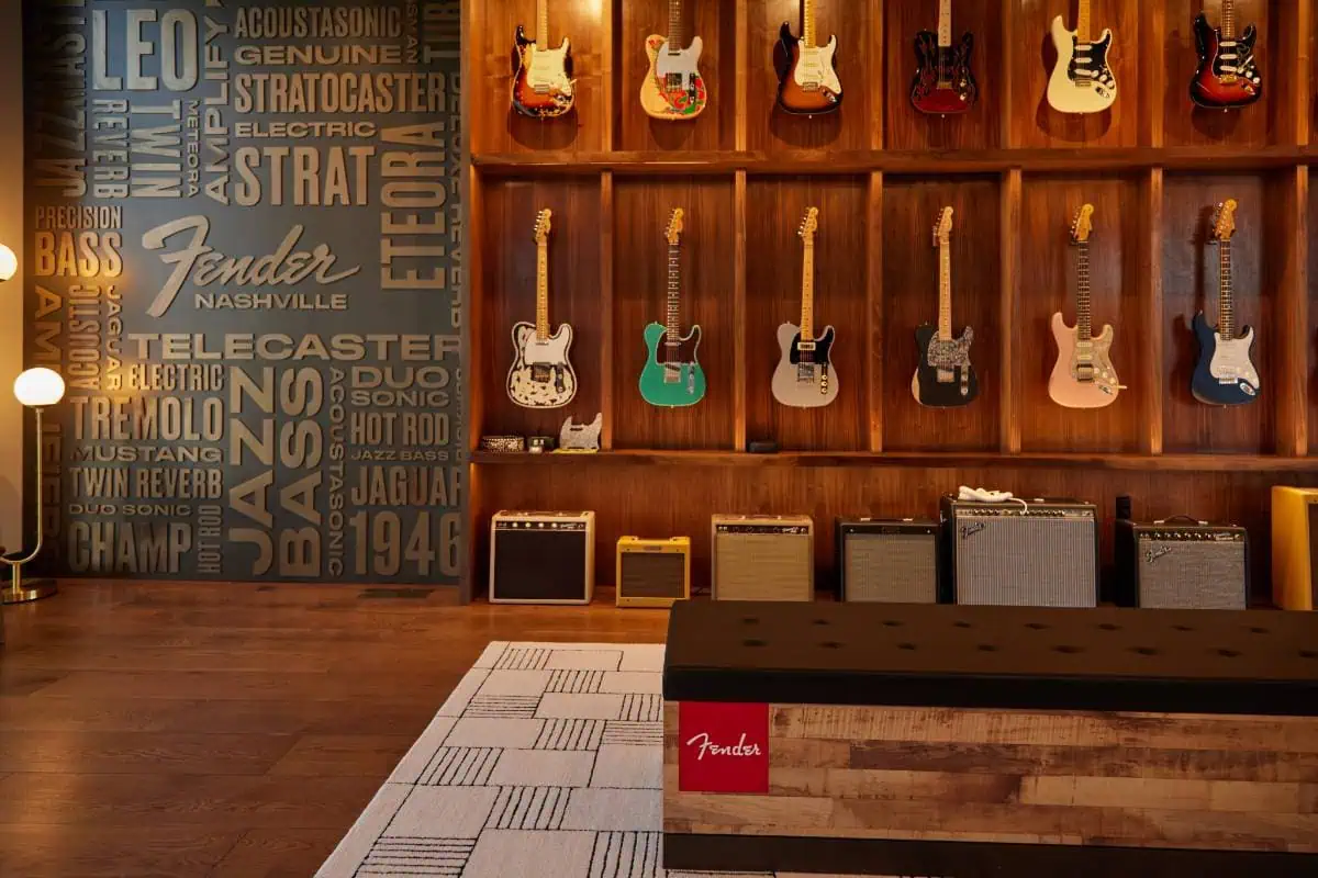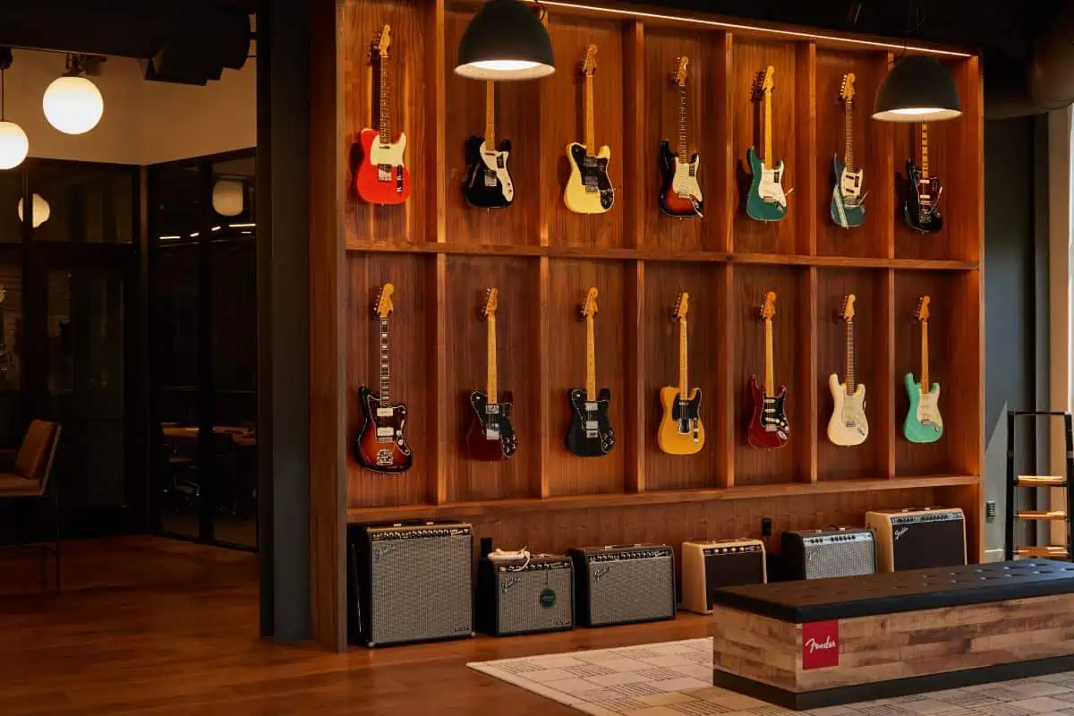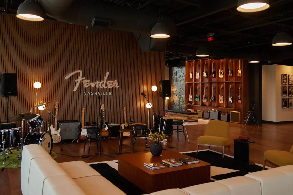 In Fender’s new Nashville headquarters, the flooring sets the tone—literally and visually—for a space rooted in craft, creativity, and culture. Sourced from our Curated Collection, the 11″ Northern Appalachian White Oak is heavily distressed with black bleed, evoking the raw soul of a well-worn guitar. Its scale and finish bring warmth and grit to the modern industrial palette, complementing the moody brick exterior and soaring steel windows. From the Fender Woodshop on the ground floor to the Artist Relations loft above, the flooring acts as a visual throughline—grounding each moment in the tactile authenticity of true craftsmanship.