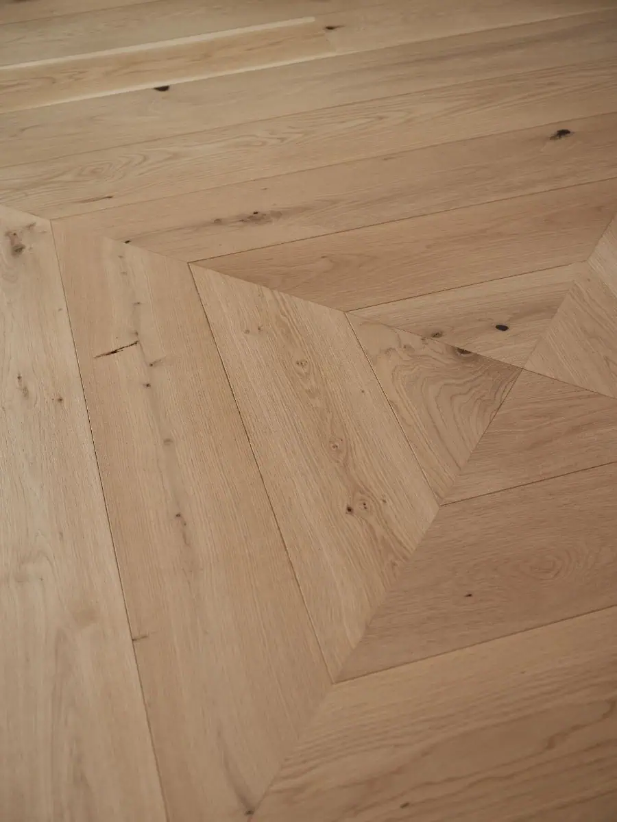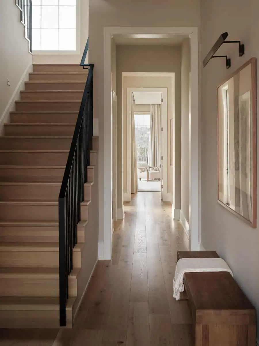 Featuring Foundation No. 04 in 7.5″ plank widths, paired with custom treads and risers and moments of concentric parquetry, the result is both thoughtful and timeless. Materials that perform, details that elevate, and a finish that will carry this home forward for years to come.